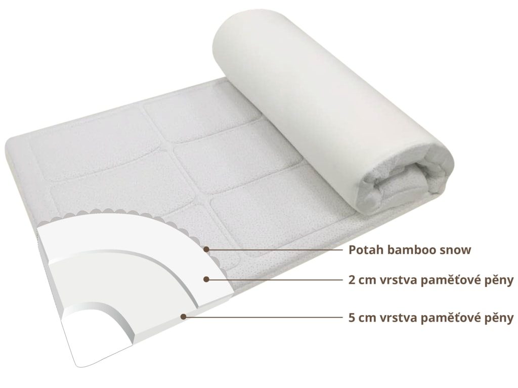 ROZBALENÉ PŘISTÝLKY. Přistýlka s největším efektem zaboření z naší nabídky v hřejivém potahu Bamboo snow. Díky vrchní vrstvě pěny všité do potahu je přistýlka velmi měkká.
